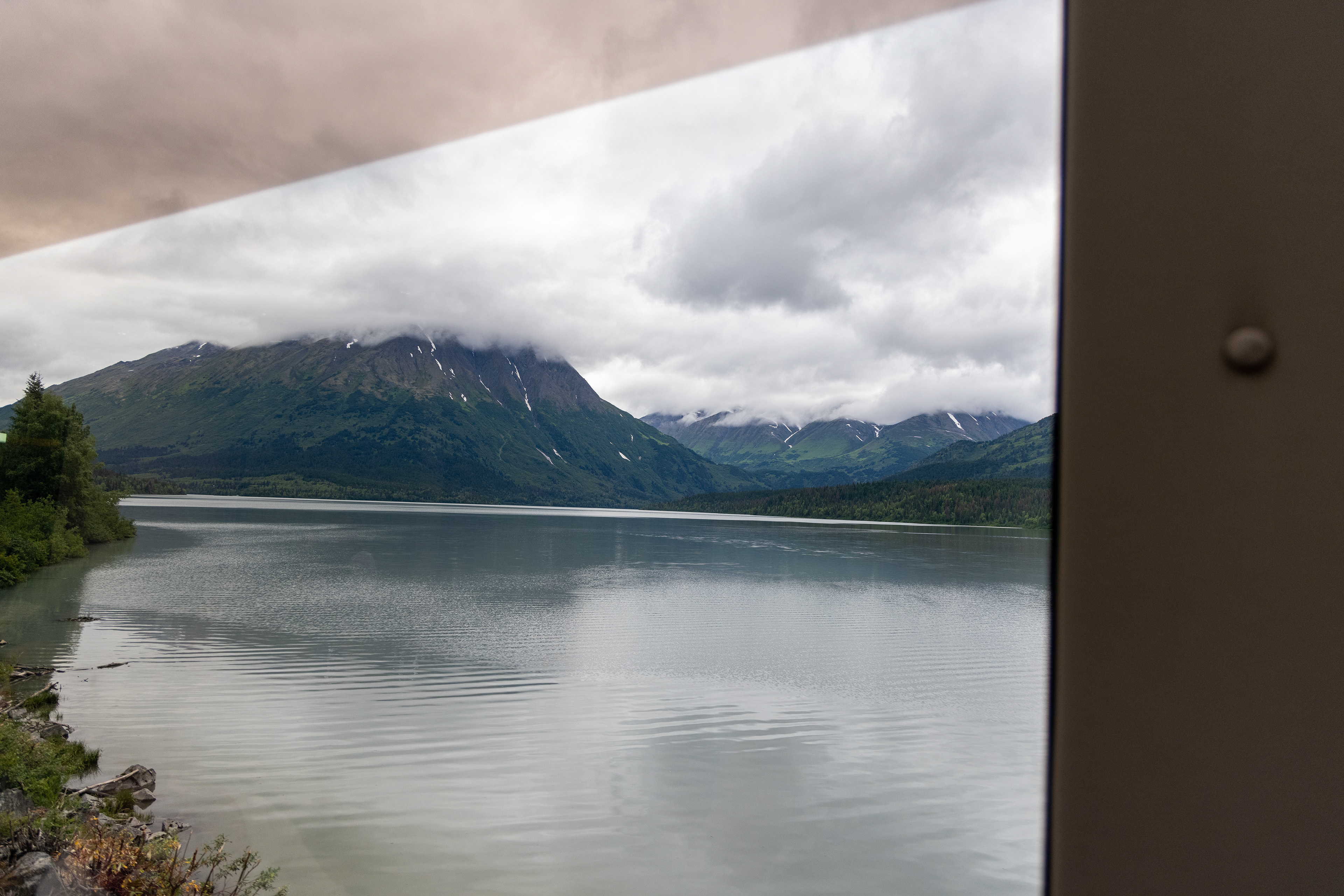 I boarded a bus from the Alyeska Hotel to the "train station", kind of a wide spot in the road. It was the same train bringing Janet and her family to the ship. After a few formalities in my designated coach, I joined Janet and company in their coach. It was a beautiful train ride down to Seward. The train stopped very close to our ship, the MV Silver Shadow. The usual procedures with paperwork to board took some time, but finally we were brought to our rooms. Our luggage was magically already there. They do have the luggage service worked out very well. The rooms were gorgeous with a big balcony. Champagne and fruit and all the amenities were already laid out for us. What a luxurious way to travel.